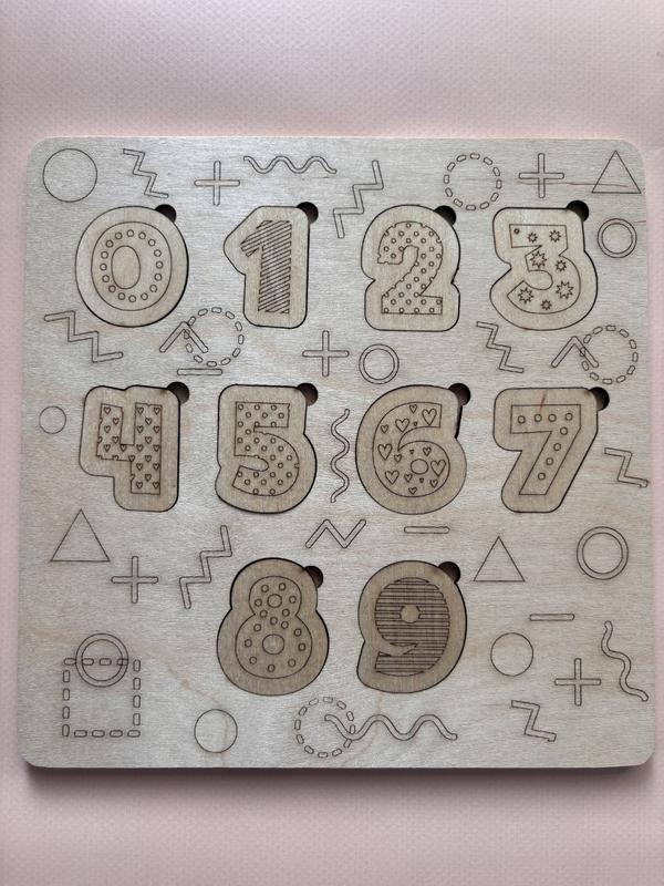 Игра пазл вкладыш "Цифры" для развития ребенка. Играем складываем и учимся считать. Играя, развиваем логику, моторику рук ребенка. Размер 20х20см.