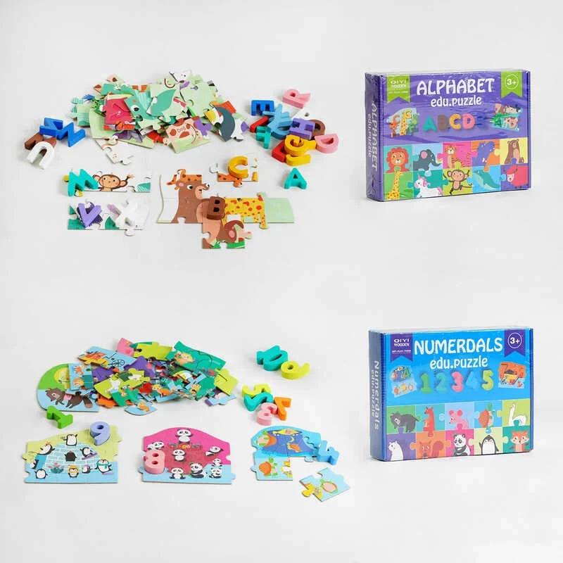 Яркий деревянный пазл c 47749: алфавит и цифры