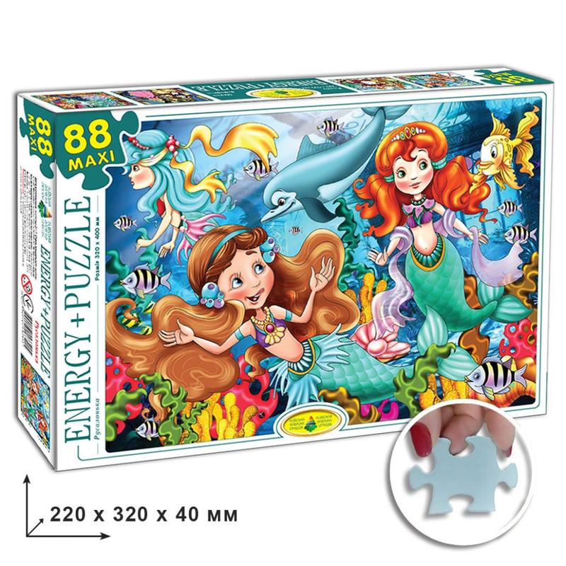 Пазли 88, Арт.ЕГ-15. Русалочка 83415 – игровой набор, рекомендованный для детей старше трех лет, подойдет для развития воображения, логического мышления, мелкой моторики пальчиков и цветового восприятия. Набор, включающий в себя 88 деталей, позволяет собрать картинку размером 300 х 420 мм, где изображен сюжет из сказки «Русалочка». В процессе выбора подходящего фрагмента, Ваш малыш будет учиться принимать самостоятельные решения без помощи взрослых. В ходе такого времяпровождения Ваш маленький умник будет тренировать навыки запоминания, развивать фантазию, пополнит словарный запас и расширит кругозор. В новой коллекции украинской торговой марки «Энергия Плюс» представлено множество пазлов с сюжетами любимых сказок, поэтому Ваш ребенок сможет составить собственную домашнюю коллекцию. Игровой набор пазла тренажера создан в красочной цветовой гамме, которая привлечет внимание ребенка, поспособствует развитию эстетического восприятия.