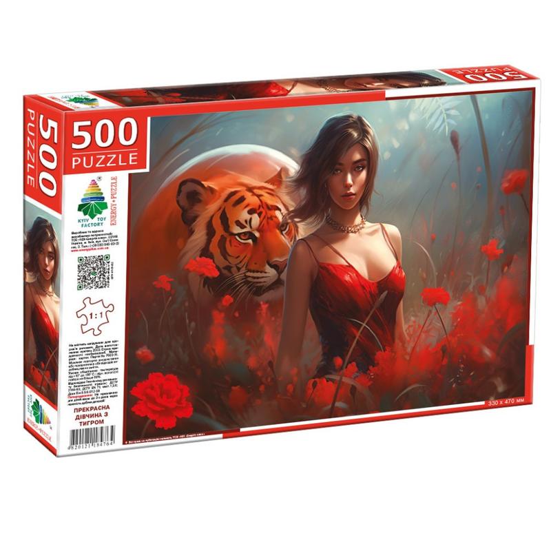 Пазл классический "прекрасная девушка с тигром" 84764, 500 элементов