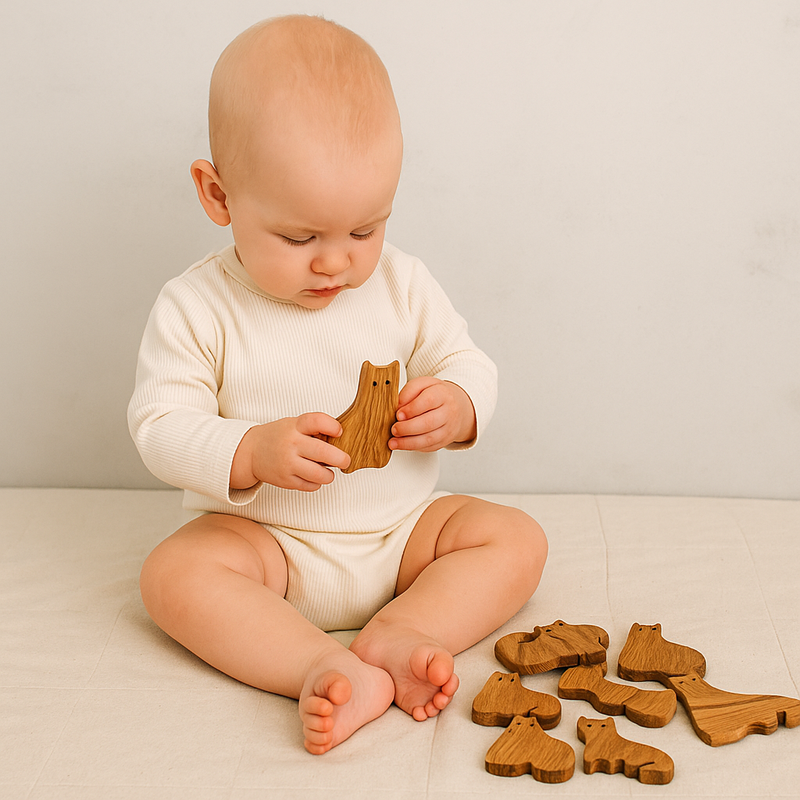 Детские пазлы - головоломка из натурального дерева в виде котики, ручной работы. Отличная развивающая игрушка для малыша от 6 месяцев. Каждый котик имеет свое место в головоломке. Да может быть использован малышом для ознакомления и обучения. Фигурки красиво отшлифованы, и имеют приятную на ощупь текстуру натурального дерева. Детские пазлы - головоломка могут стать уникальным и полезным подарком для малыша на любой праздник!