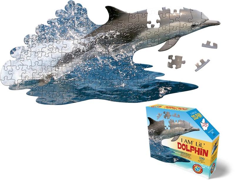 Це пазл у формі дельфіна. Він складається зі 100 елементів. Призначений для дітей віком від 5 років. Поставляється з плакатом. Виробник - Heritage Puzzles.