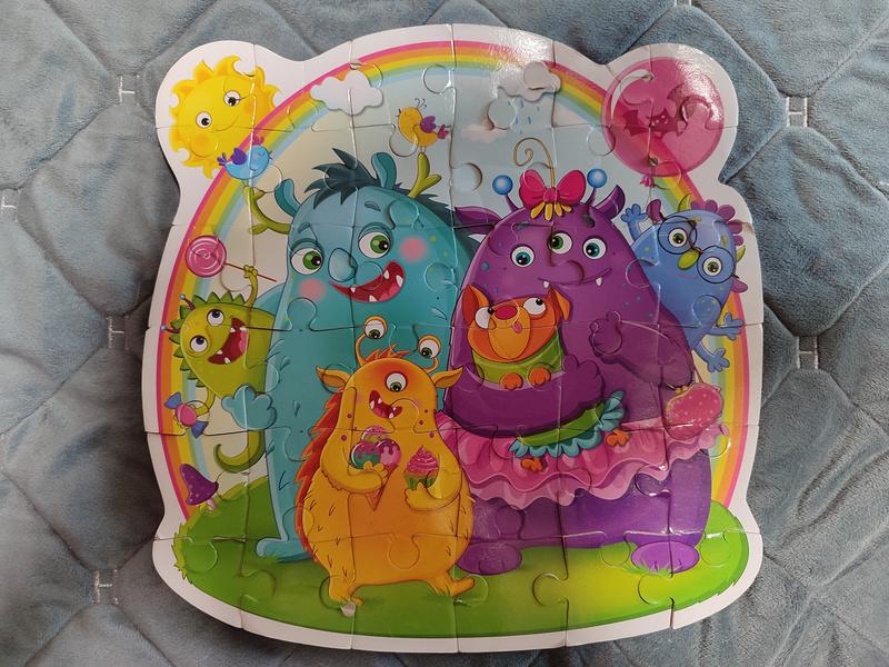 Мягкие пазлы Монстрики 36 элементов Размер готовой картинки 31,2х31,2 см Толщина детали 6мм Материал вспененный полимер Все детали на месте, покупались без коробки. Смотрите все товары, там есть много интересного.