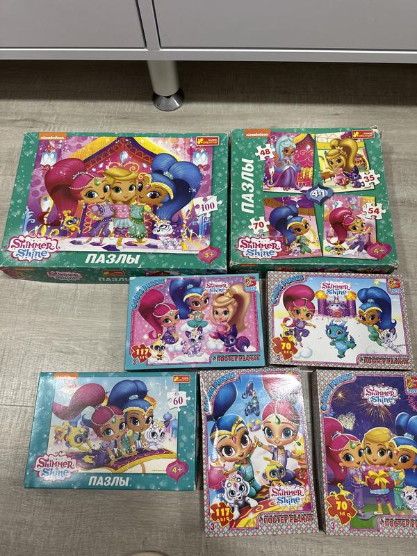 Пазли в гарному стані,дві верхні коробки трохи розірвані,але деталі усі присутні Ціна вказана за усі пазли,кількість деталей кожного вказано на коробці