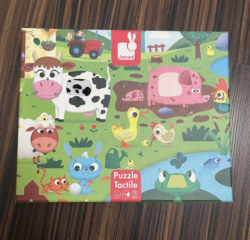 Бренд: Janod (Франція) Вік: 2–4 роки Продаю якісний тактильний пазл від Janod — чудова розвиваюча гра для малюків. У деяких тваринок елементи мають різні текстури (м’якенькі, пухнасті тощо) — дитина може торкатися й вивчати на дотик. ✔ Характеристики: • 20 великих деталей • тактильні вставки: корова, свинка, качка, жабка • яскраві ілюстрації з ферми • міцний картон • великий розмір елементів — зручно маленьким ручкам • ідеально для розвитку моторики та сенсорики ✔ Стан: У чудовому стані, комплект повний, нічого не втрачено. Коробка ціла.