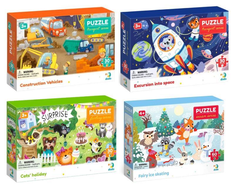 Пазли для дітей Dodo 3-6 років Красивые, качественные пазлы. Б/у в отличном состоянии, все на месте, все целое. За всё 400 грн. Строительная техника - 30 шт Кошачий праздник - 30 шт Экскурсия в космос - 30 шт Сказка на коньках - 60 шт + подарок идут большие мягкие пазлы с пандой - 20 шт По отдельности - не продаю