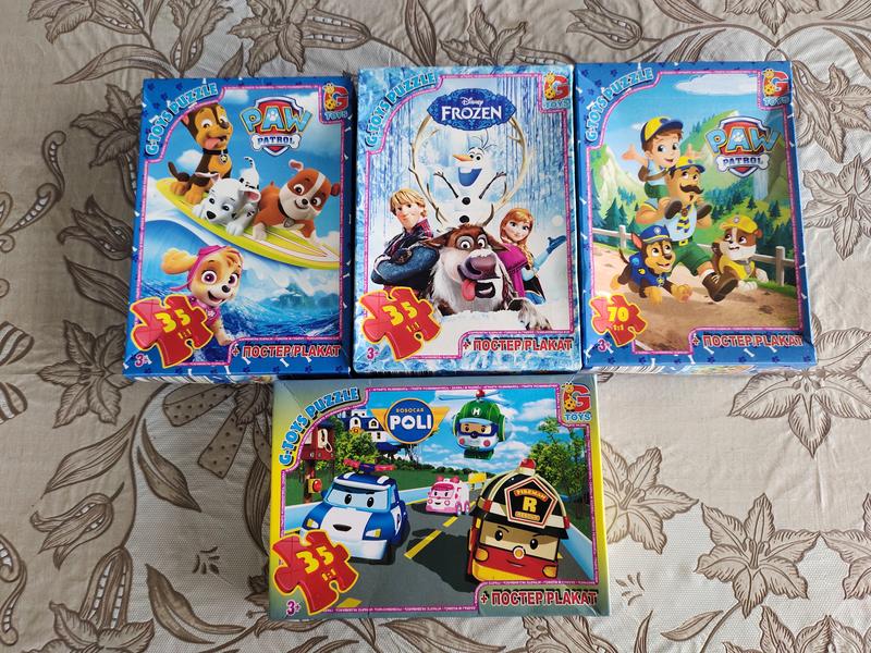Детские пазлы 3+, одна коробка на 70 элементов, три коробки на 35 элементов,все детали на городе,цена за все.