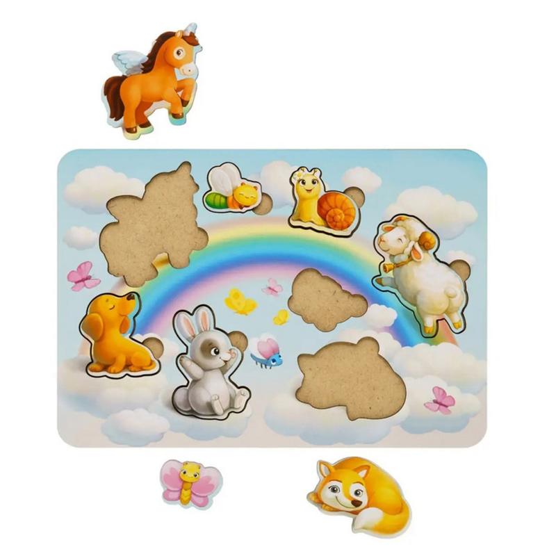 Деревянный пазл-вкладыш "звери-2" ubumblebees (псф049) psf049, 8 элементов