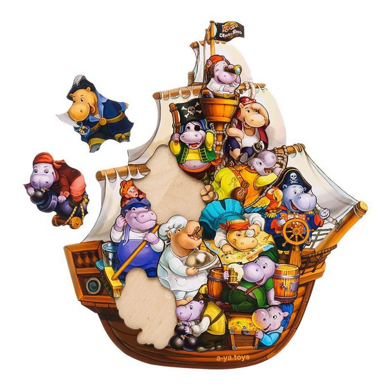 Деревянный пазл-вкладыш "бегемотики-пираты" ubumblebees (псд083) psd083, 13 бегемотиков