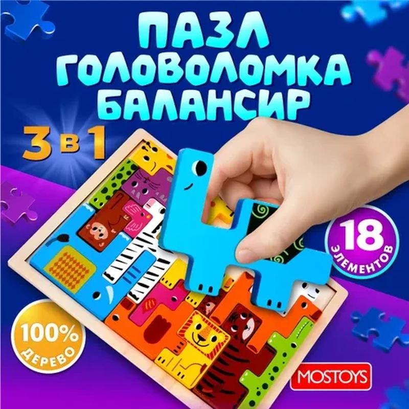 Деревянный пазл 3d в рамке для малышей зоопарк