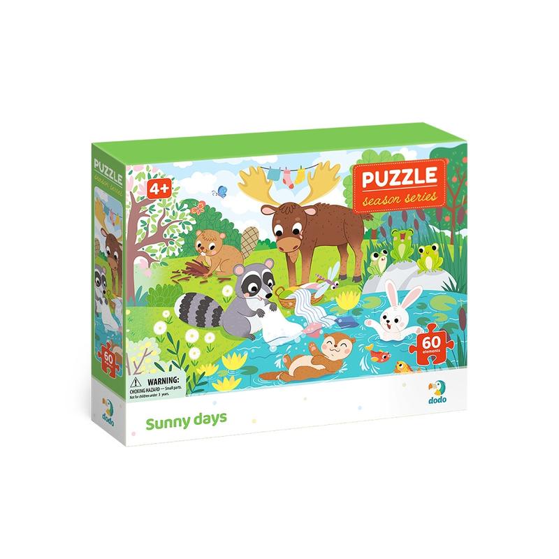 Настав час літніх розваг! Тваринки прийшли купатися в озері та гріти шерстку на сонечку. Але і про справи забувати не треба, вважає єнотик, та береться за прання. А що більше любите робити ви? Робимо навколишній світ чарівнішим за допомогою серії «Пори року», які стануть фаворитами маленьких фантазерів. Яскраві пазли для дітей від 4-х років, розповідають історії пригод милих тваринок. Зберіть всі чотири пазли серії, щоб скласти їх у єдину картинку! Виготовлені з якісного картону, вони довговічні, приємні на дотик та зручні у використанні. Вік: 4+ Кількість елементів: 60 Розмір пазла: 32 × 23 см Розмір коробки: 18 × 24 × 4 см Бренд: Dodo Артикул: 300412