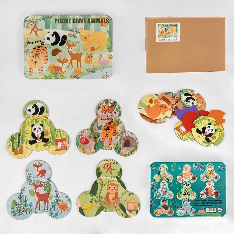 Обучающие пазлы "Мир милых животных" Подарите вашему ребенку не только яркие, но и полезные для развития игры с нашими обучающими пазлами "Мир милых животных"! Особенности: - Компактная и удобная металлическая коробочка для хранения и переноски. - Восемь захватывающих картинок с милыми животными, которые стимулируют фантазию. - Развивают сообразительность, умение находить соответствия, а также навыки логического мышления. В комплекте вы найдете 8 пар логических пазлов, на каждом из которых изображено веселое зверюшка в его природной среде. Перемешайте все элементы, чтобы ребенок смог найти соответствия и собрать логическую цепочку в одно целое. Пазлы изготовлены из высококачественного плотного картона, что гарантирует долгий срок использования.