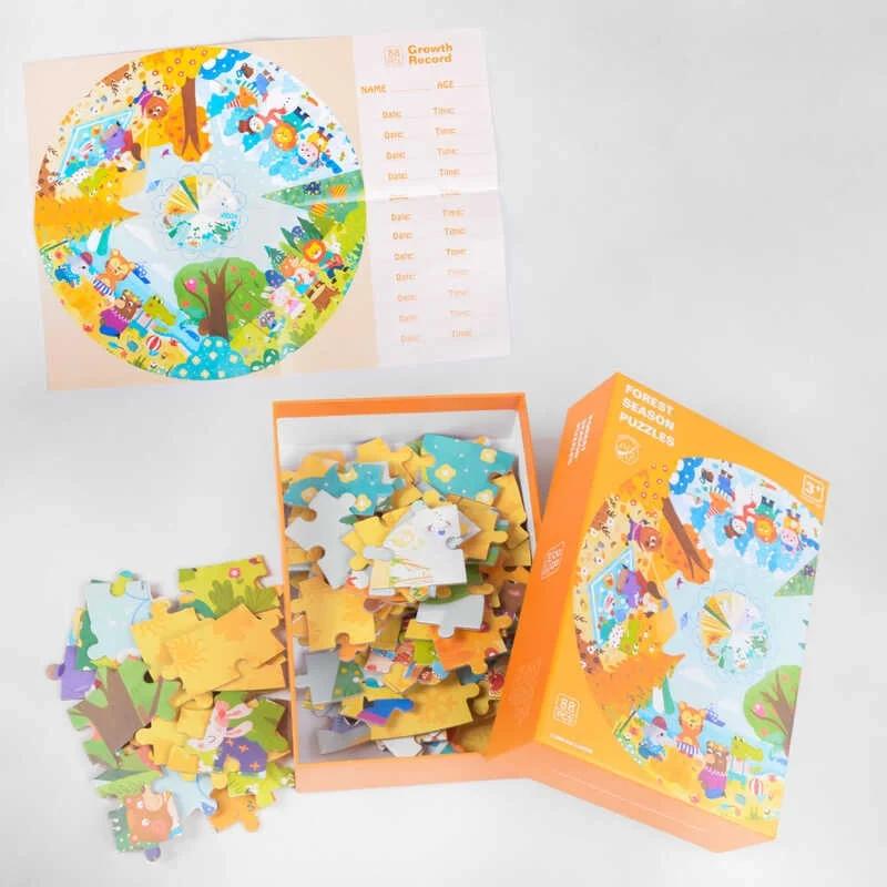 Увлекательный пазл "Времена года" для настоящих любителей головоломок Откройте для себя уникальный круглый пазл из 88 деталей, погружающий вас в чарующий мир леса. Этот пазл изготовлен из высококачественного плотного картона, что гарантирует долговечность и комфорт при сборке. На пазле изображены все четыре времени года, расположенные друг напротив друга, показывая изменения в природе в течение года. Основные особенности: - Круглая форма пазла добавляет интриги и делает сборку еще более увлекательной. - Яркие цвета и детализированные изображения лесных животных и природы. - Большой размер элементов обеспечивает удобство в использовании, особенно для детей. - Безопасные материалы и красители, что делают головоломку идеальной для детей. - Развивает мелкую моторику, логическое мышление, воображение, усидчивость и концентрацию внимания. - Дополнительный постер с ростомером, упрощающий сборку. Размер собранного пазла – 53×53 см. Комплектация: пазлы, плакат.