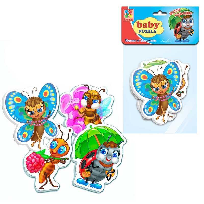 Развивающие мягкие пазлы для малышей Эти пазлы отлично подходят для самых маленьких детей, которые только начинают знакомиться с играми на развитие логики и моторики. В наборе 4 пазла с разным количеством деталей, что позволяет постепенно усложнять задания. - Изготовлены из мягкого объёмного материала, приятного на ощупь - Развивают мелкую моторику, внимание и логическое мышление - Идеальны для обучения соединять части в целое - Яркие и красочные изображения насекомых привлекают внимание малыша