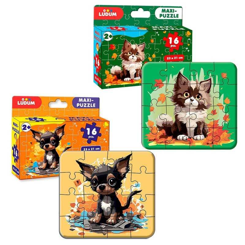 Игра-головоломка ludum me5032-08 с изображением котёнка и собачки, 2 набора по 16 деталей