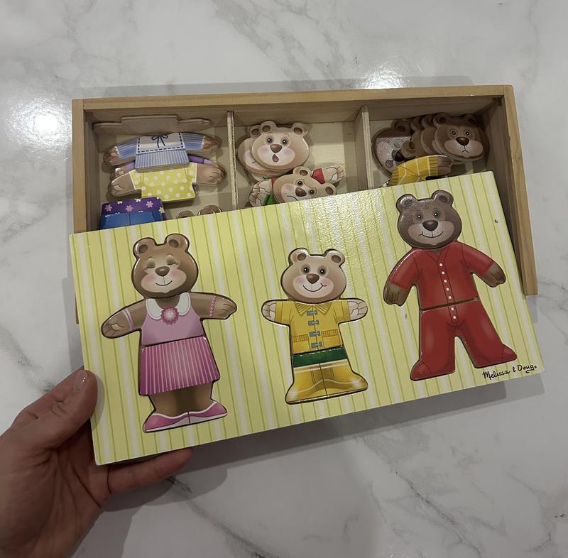 Повністю відповідають фото. Дерев'яний пазл Одягни сім'ю ведмедів складається з цілого гардеробу, за допомогою якого можна одягнути ведмедиків, при цьому комбінувати одяг. Всі елементи набору виготовлені з натурального дерева, лицьова сторона покрита шаром спеціального екологічного чистого покриття, яке захищає малюнок від витирання та вицвітання.