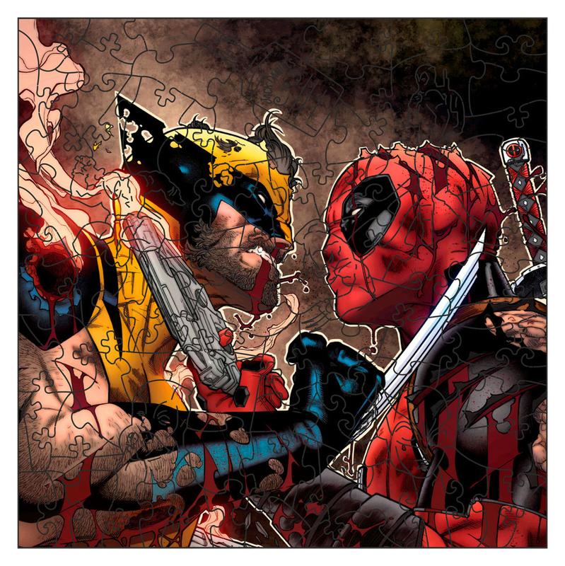 Фигурный пазл из дерева "дэдпул и росомаха" pz002-a3w-ac 180-250 деталей, а3 с мешочком и...
