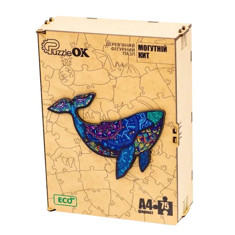 Фигурный деревянный пазл a4 "могучий кит" puza4-04126, 75 деталей