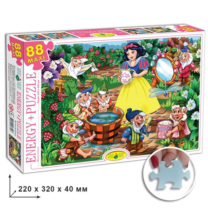 Выполненный из уплотненного, ламинированного картона толщиной 2 мм, универсальный игровой набор пазлы 88, Арт.ЕГ-03. Белоснежка 83293 – отличный подарок для маленького подрастающего гения. Пазл состоит из 88 деталей, из которых ребенок будет складывать картинку 300 х 420 мм, где изображен сюжет из сказки «Белоснежка». В набор входят крупные детали, которые удобно удерживать в маленькой детской ладошке, выполненные из экологически чистого, безопасного сырья. Красочный, превосходно выполненный пазл представлен в улучшенной коллекции украинской торговой марки «Энергия Плюс», вдохновленной популярными, любимыми сказками. Юные поклонники волшебства и приключений по достоинству оценят все преимущества продуманной до мелочей серии пазлов. Такая игра будет полезна для развития мелкой моторики, воображения, аналитического, образного и пространственного мышления.