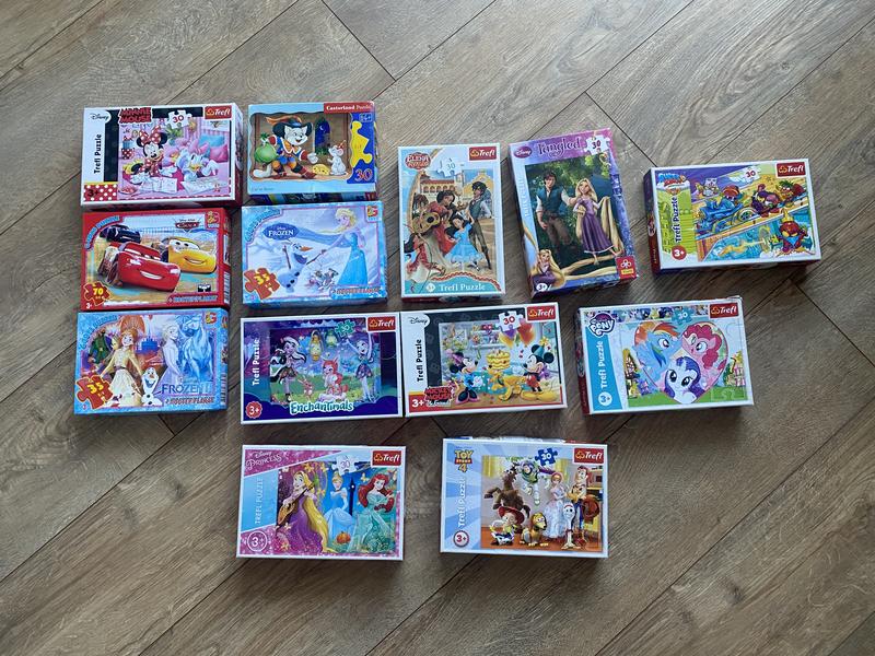 9 шт Trefl (1 немного помятая крышка) 100 грн 3 Gtoys 70 грн 1 castorland 50 грн Состояние почти идеальное Есть 2 коробки немножко примяти