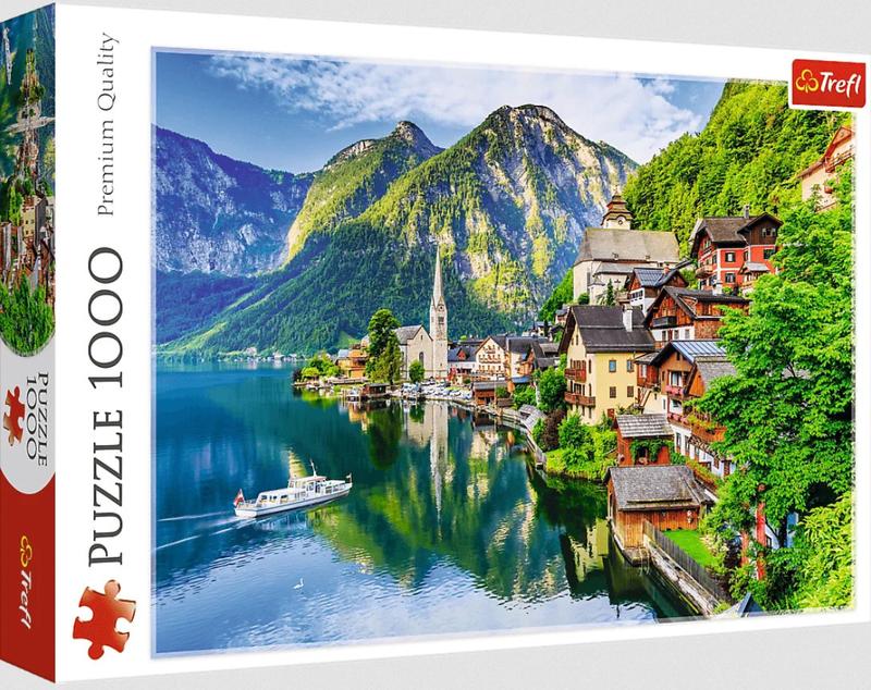 Пазлы 1000 деталей, "Халстат Австрия". После сборки будет создана картинка размером 68 х 48 см. Высокое качество, насыщенность цветов и безопасная сборка обеспечивается каландровой светоотражающей бумагой, покрытой экологичными пищевыми красками.