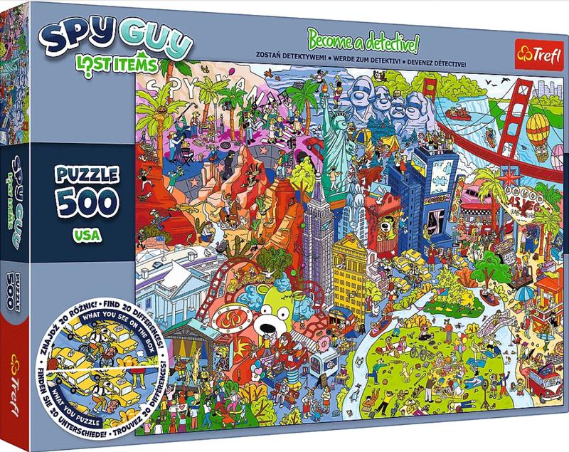 Пазл США Spy Guy Lost Item на 500 элементов заставит вас стать сыщиком! Различные объекты таинственным образом исчезли из иллюстраций, а изображение на упаковке отличается от того, что вы собрали. Попытайтесь найти их во время разгадывания головоломки или отследите их на готовой головоломке. Примите вызов! Устройте красочный мультфильм Гданьск и найдите все 20 отличий на картинке размером 480х340 мм.