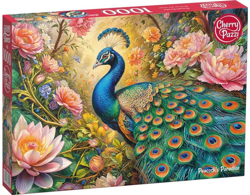 Пазлы Премиум Павлиний рай на 1000 деталей CherryPazzi. После сборки будет создана яркая картина размером 50 х 70 см.- пазл для взрослых и подростков. Это отличная умственная головоломка, успокаивает мозг и вызывает состояние творческой медитации. Пазлы имеют изображения очень высокого разрешения с очень высокой четкостью печати, что делает мелкие детали четко видимыми. Они покрыты высококачественной растительной масляной краской. Материал краски не токсичен, безопасен и не имеет запаха. В прочных коробках находятся детали пазла различной формы толщиной 2,2 мм.