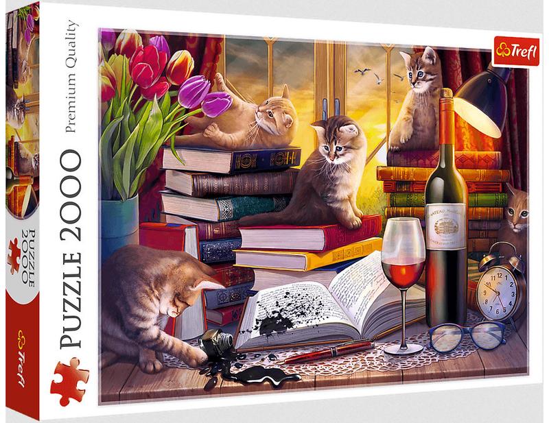 Пазл 2000 деталей Кошачий вечер. После растановки будет создана картинка размером 96х68 см. Высокое качество, насыщенный цвет и безопасная сборка снабжается светоотражающей бумагой, покрытой экологичными пищевыми красками.