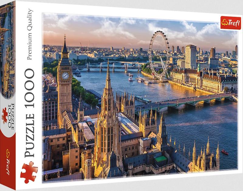 Пазлы 1000 деталей, из которых открывается увлекательный вид на Лондон. После сборки будет создана картинка размером 68 х 48 см. Высокое качество, насыщенность цветов и безопасная сборка обеспечивается каландровой светоотражающей бумагой, покрытой экологичными пищевыми красками.