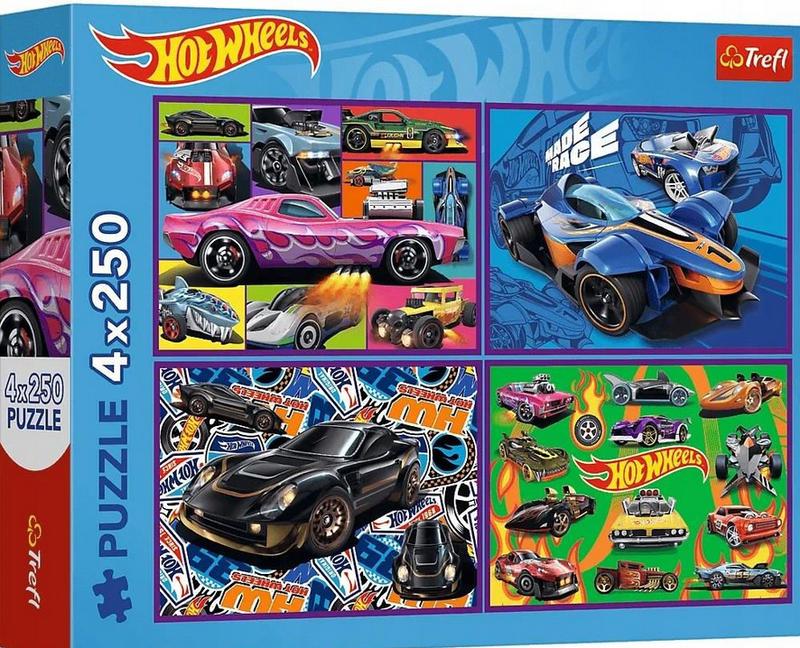 Пазл 13312 ''Гоночные автомобили'' 4х250 -- то четыре пазла по 250 деталей в одной упаковке. Гоночные машинки - это пазлы, представляющие собой коллажи машинок Hot Wheels.Каждый пазл позволит создать картину размером 339x238 мм. Продукт произведен в Польше с заботой об окружающей среде и с использованием высококачественных материалов, сертифицированных FSC, а фольга на упаковке заменена наклейками.