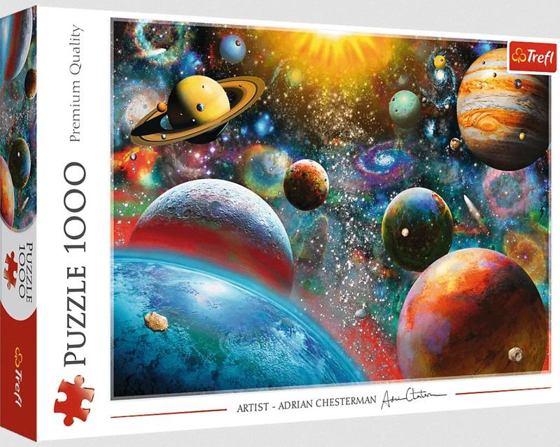 Пазлы 1000 деталей, "Космос". После сборки будет создана картинка размером 68 х 48 см. Высокое качество, насыщенность цветов и безопасная сборка обеспечивается каландровой светоотражающей бумагой, покрытой экологичными пищевыми красками.