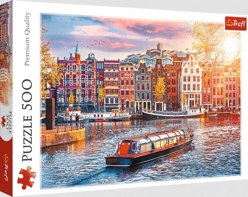 Пазл 500 деталей Амстердам Голландия. После сборки будет создана картинка размером 58х34 см. Высокое качество, насыщенность цвета и безопасная сборка обеспечивается каландровой светоотражающей бумагой, покрытой экологичными пищевыми красками.