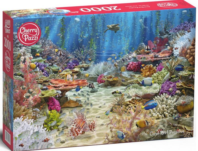 Пазлы Премиум Рай кораллового рифа на 2000 деталей CherryPazzi. После сборки будет создана яркая картина размером 70 х 100 см.- пазл для взрослых и подростков. Это отличная умственная головоломка, успокаивает мозг и вызывает состояние творческой медитации. Пазлы имеют изображения очень высокого разрешения с очень высокой четкостью печати, что делает мелкие детали четко видимыми. Они покрыты высококачественной растительной масляной краской. Материал краски не токсичен, безопасен и не имеет запаха. В прочных коробках находятся детали пазла различной формы толщиной 2,2 мм.
