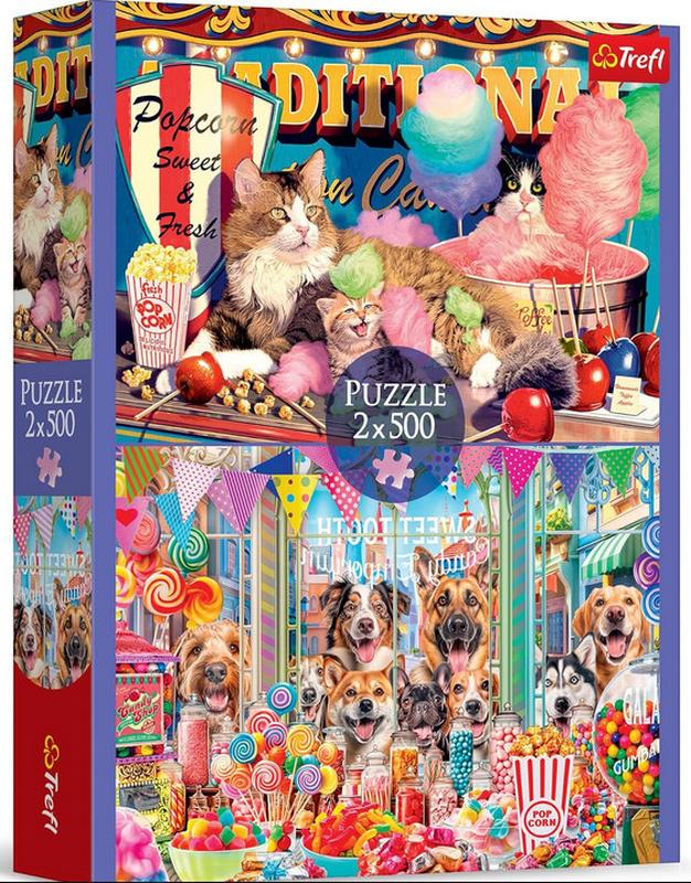 Пазл Пушистые друзья 2х500 -- это два пазла по 500 деталей в одной упаковке! Пушистые друзья - это головоломка, являющаяся милой интерпретацией собак и кошек. Каждый пазл позволит вам создать картинку размером 480х340 мм. Пазлы изготовлены в Польше из высококачественных материалов и с заботой об окружающей среде. Пазл покрыт специальной каландрированной бумагой, которая отражает свет, что облегчает его сборку.