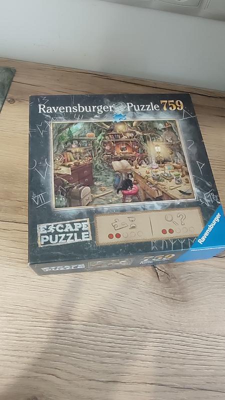 Это пазл Ravensburger Escape Puzzle "Кухня ведьмы" (Witch's Kitchen). Количество элементов: 759. Тип игры: Сочетает сборку пазла с элементами квеста в стиле "Escape Room". Цель: После сборки нужно разгадать загадки, найти шифры и коды, чтобы "выбраться" из комнаты, изображенной на рисунке. Особенность: Собранное изображение содержит подсказки, которые не видно на коробке. все детали присутствуют. фото сложного пазлика могу сбросить при необходимости