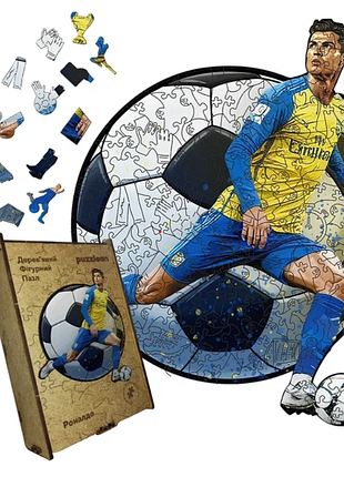 пазл Решительный Роналду: составьте уникальный образ великого футбольного мастера, воспроизводя его непревзойденную технику и талант с помощью деревянных частиц! формат А3