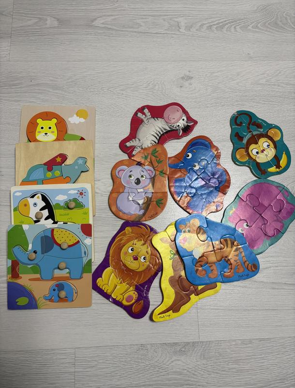 Стан деревʼяних ідеальний Мʼякі пазли в доброму стані, є заломи на деяких В лот входять 4 деревʼяних та 8 мʼяких пазлів Ціна за лот