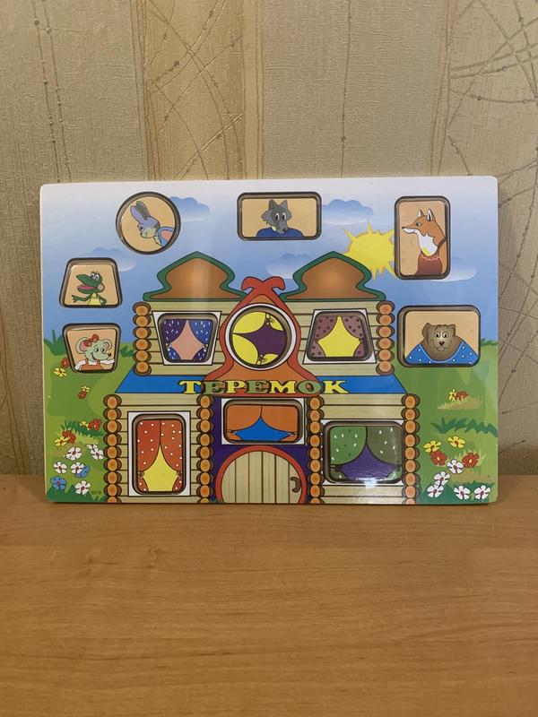 Рамка вкладиш по казці "Теремок". Дерев'яні пазли для самих маленьких. Для дітей від 1.5 років. Розмір планшета: 35*25 див. нова Іграшка.
