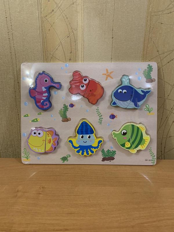 Деревянная игрушка Рамка - вкладыш. Деревянные объёмные пазлы-вкладыши - замечательная игрушка для малыша. Задача ребёнка - собрать цельную картинку из отдельных кусочков разной формы, подобрав для каждого определённое место. Кусочки пазла выпуклые, легко удерживаются в ручке и вставляются на места. Игрушка развивает логическое мышление, моторику ручек, усидчивость и смекалку. Каждый элемент состоит из 2х частей. Возраст: 1+ Размер планшета: 30*22.5 см. Материал: дерево. Игрушка новая.