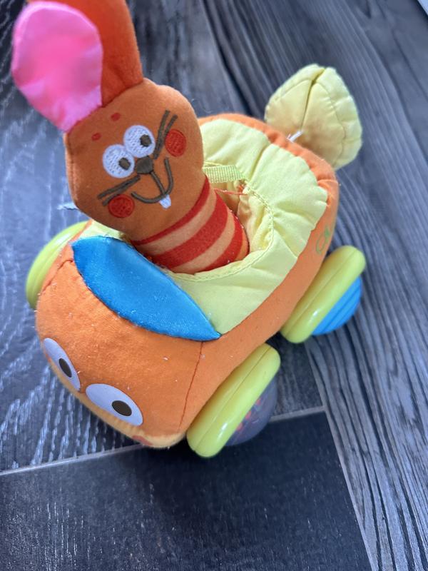 Состояние отличное Машинка с зайкой Сзади за кружочек тянешь и машинка дребезжит как будто едит