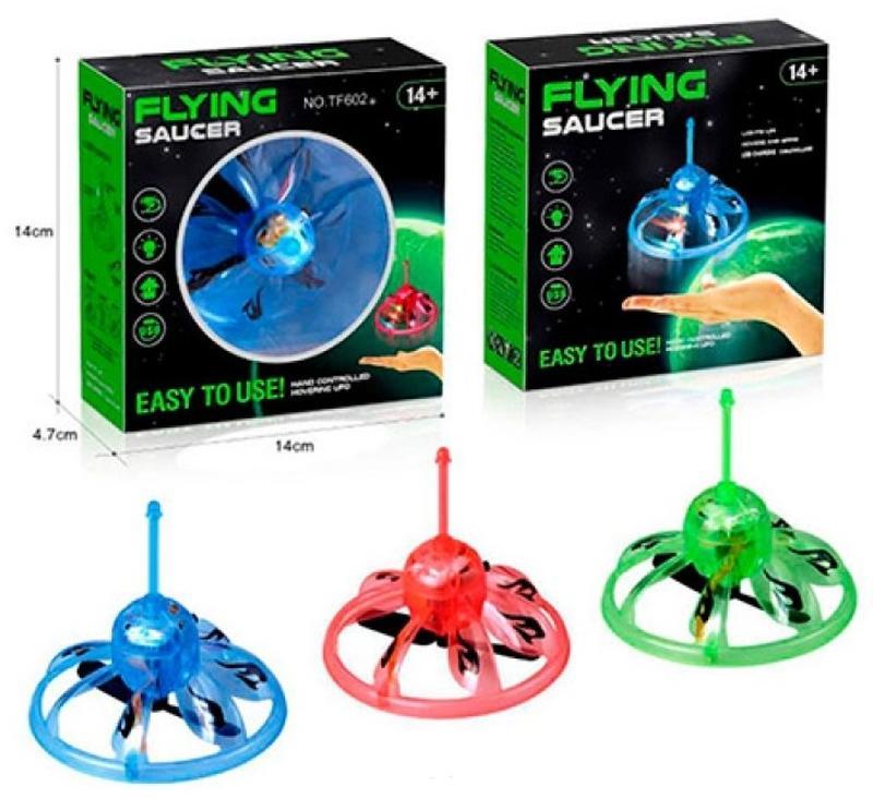 Кілька примірників у наявності Гра літаюча тарілка 9см. Акумулятор. Реагує на руку. USB заряджання. 3 кольори. У коробці 14,5-14,5-5см. Літає від руки