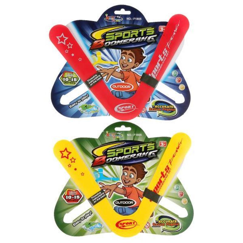 Бумеранг -- игрушка для активного отдыха на свежем воздухе. Благодаря особой форме бумеранг пролетает расстояние и возвращается к месту запуска. Перед использованием игрушки внимательно ознакомьтесь с правилами бросания бумеранга, представленными на задней стороне упаковки. Дальность полета 15 - 20 метров. Размер бумеранга 27 * 0,5 * 19 см.