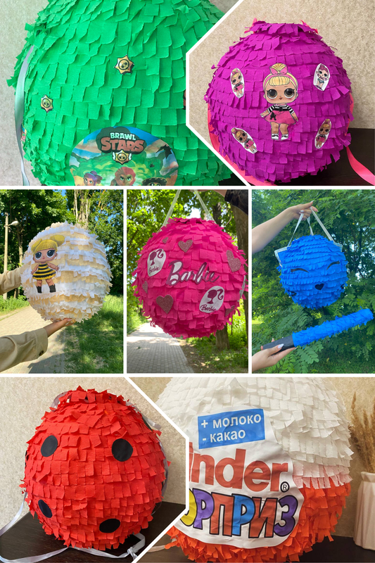 Щоб побачити щасливі оченята ваших діток треба лише наша піньята і гарний настрій🤗 Піньята міцна вистачить для розбивання 15 дітей ( якщо вона велика), також має отвір для заповнення серединки. Піньяти робимо на Ваш смак і розмір, також є стандартні розміри в обʼємі.