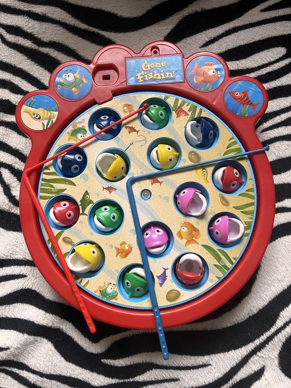 Гра на батарейках . Крутиться по кругу , рибки відкривають та закривають ротики , їх потрібно зловити вудкою . Стан нової . Працює без перебоїв.Без подряпин. Але вудки мали по три вусика а тепер по два .