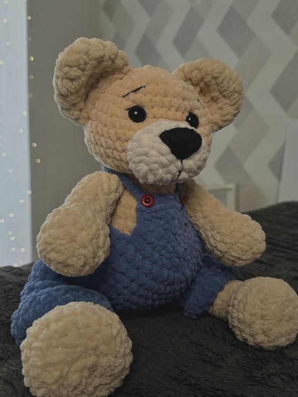 Игрушка, которая сделана с любовью♥️ Ручная работа Мишка «Пухлик» Бежевый и синий комбинезон Черные глаза, 40 см На любой возраст🥰