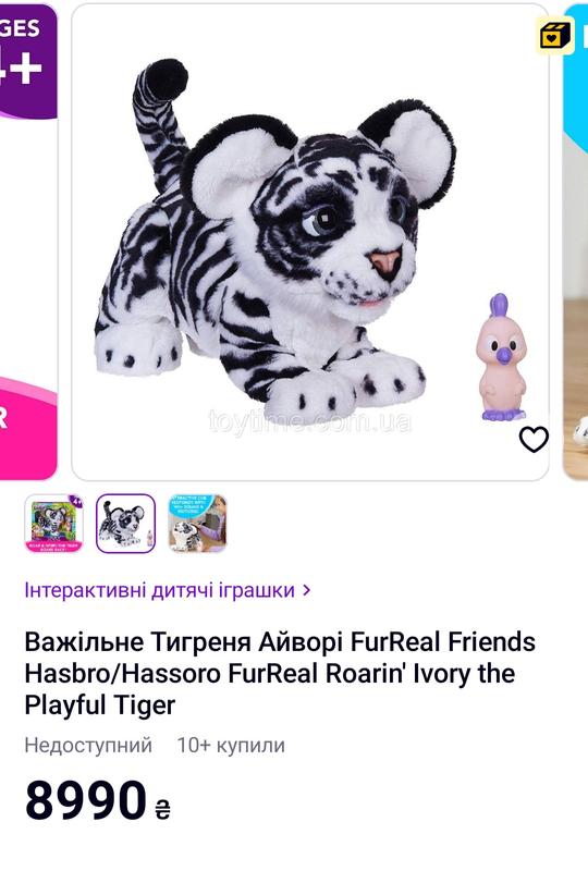 FurReal Friends — это уникальная серия интерактивных игрушек, в которой мы можем видеть самых разных животных, от домашних котят до сказочного единорога. Пушистый тигренок Айворы Hasbro Fur Real Friends - как живой! Он умеет рычать, играть и очень любит обниматься. Почеши его ушко, погладь тигренка или погрузись вместе с ним - с таким замечательным другом не скучаешь! Интерактивная игрушка реагирует на прикосновения — есть более 100 комбинаций звуков и движений. Потрясающий звуковой эффект: порышни, и тигренок закроет в ответ! В комплект входит фигурка цыпленка, с которой тигренок играет. Мягкого тигренка приятно гладить и обниматься с ним. Игрушка будет полезной для моторики, воображения, мышления и эмоционального развития.