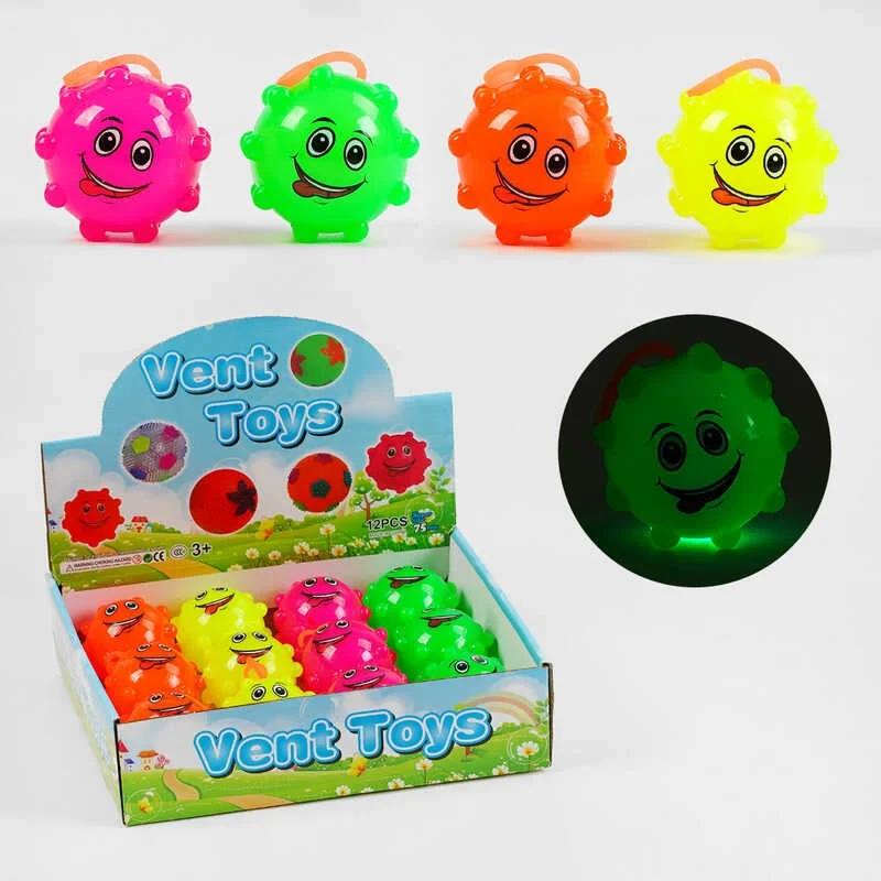Яркий прыгающий мяч c 60503 (24) с подсветкой и пищалкой, 4 цвета, набор 12 шт