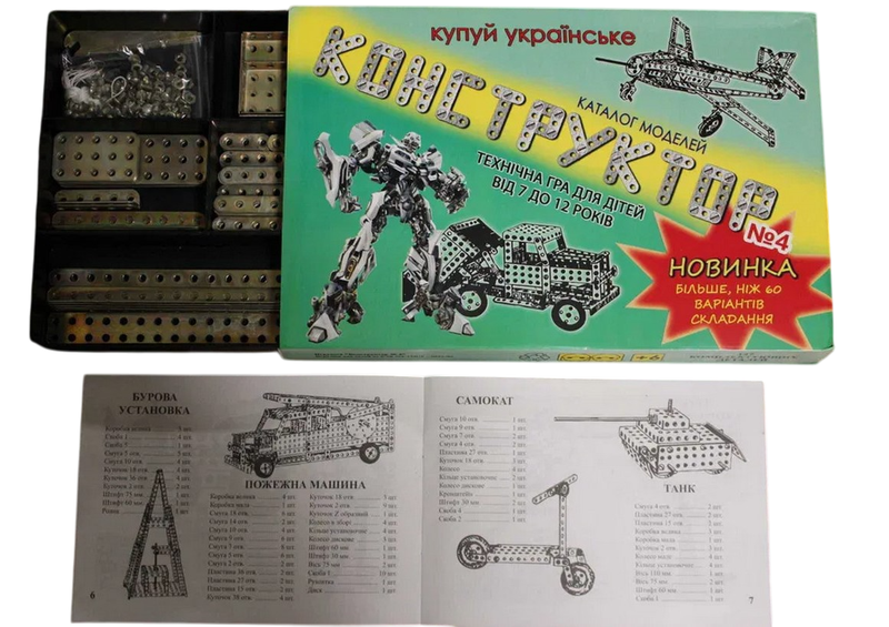 Дитячий металевий конструктор новий, у плівці з виробництва, наш Український. 250 усіх деталей (147 без болтів та гайoк) Можна складати автомобілі, кран, танк, та багато чого іншого. Відірвіть дитини від телефону, подаруйте йому цей конструктор. Розвиває: - дрібну моторику - мислення - уяву - інженерні та конструкторські навики - вміння читати креслення та схеми Кількість моделей які ви з дитиною можете розробити і створити - дійсно вражає! Дивіться інші набори конструктора в моєму профілі. Замовляйте, пишіть.