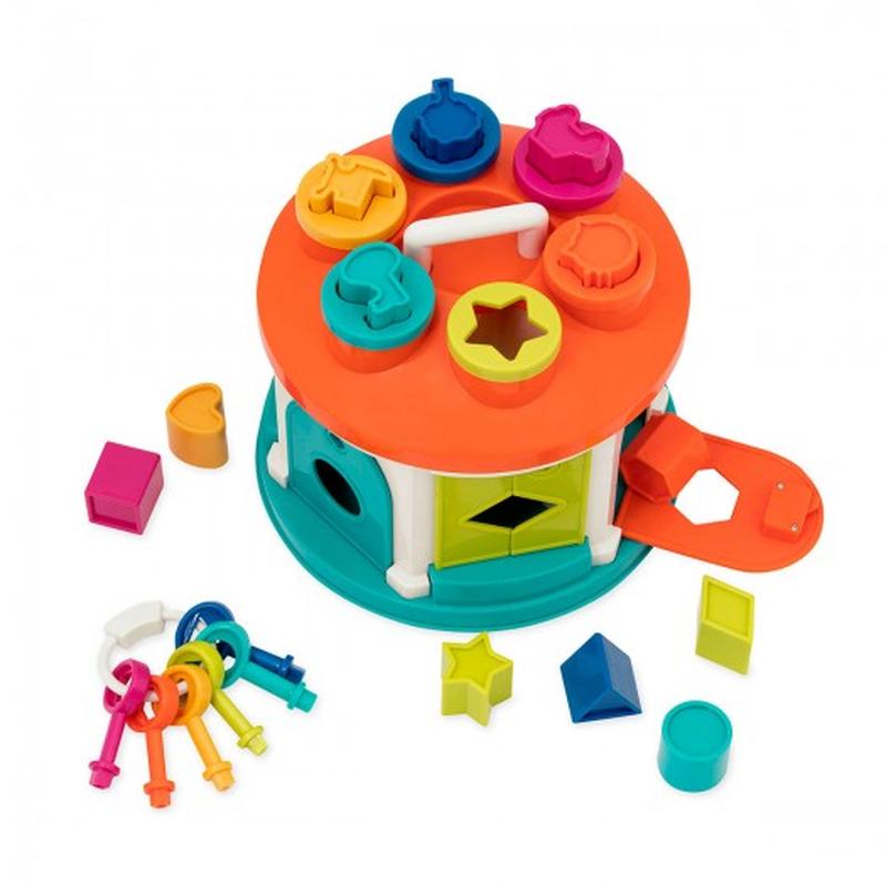 Развивающая игрушка-сортер - УМНЫЙ ДОМИК предоставляет много возможностей для игры и развития ребенка. В набор входят 12 фигурок разных форм и цветов, которые нужно правильно подобрать к соответствующим отверстиям. Находятся ли эти отверстия на крыше домика или в боковых окошках, предстоит выяснить малышу. К примеру, предложите ребенку найти правильное отверстие для фигурки котенка, а потом – подобрать ключик к дверце, за которой он прячется. Подбирать разноцветные ключики по форме и цвету, чтобы открыть дверцы, будет интересно, а также полезно для развития мелкой моторики и логики ребенка. Фигурки и ключики удобно хранить внутри домика. Домик удобно брать за ручку и нести туда, куда нужно маленькому исследователю. Малыша ждет множество заданий и веселых игр!