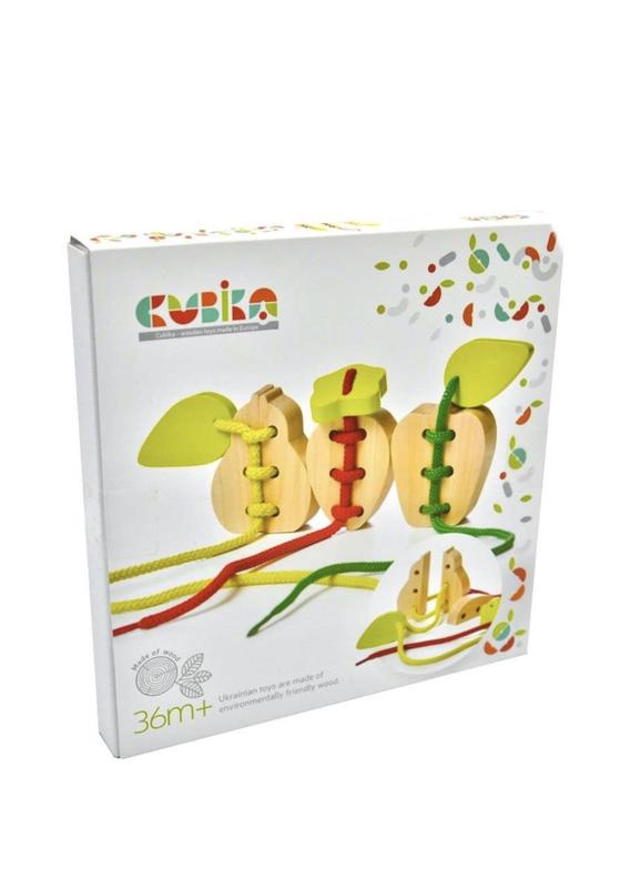 Дерев'яна іграшка у вигляді яблучок, які потрібно одягнути на шнурівку. Виготовлена з екологічно чистих, безпечних для малюка матеріалів. Допоможе дитині розвивати дрібну моторику й уважність.